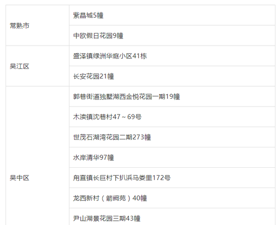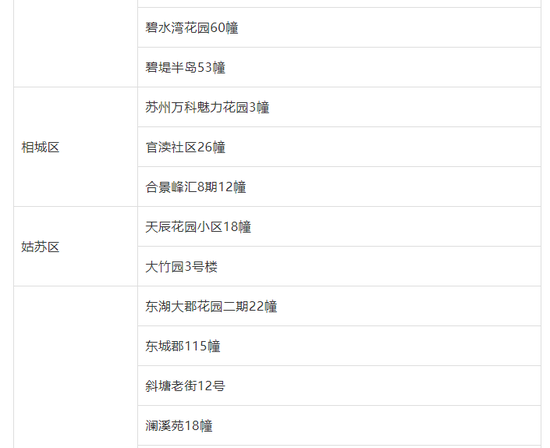 吴中区:尹山湖景花园三期43幢、碧水湾花园60幢、碧堤半岛53幢