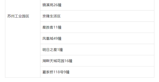苏州工业园区:星胜客11幢、凤凰城49幢、明日之星1幢、湖畔天城花园16幢、夏家桥118号9幢