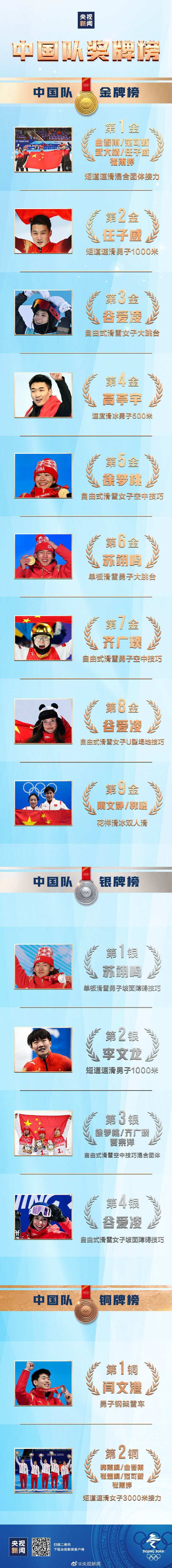 北京冬奥会所有比赛结束,中国队9金4银2铜收官